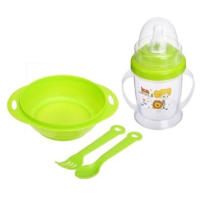 Набор детской посуды, 4 предмета: миска 200 мл, бутылочка для кормления 180 ложка, вилка, цвета микс ₽770.0 |